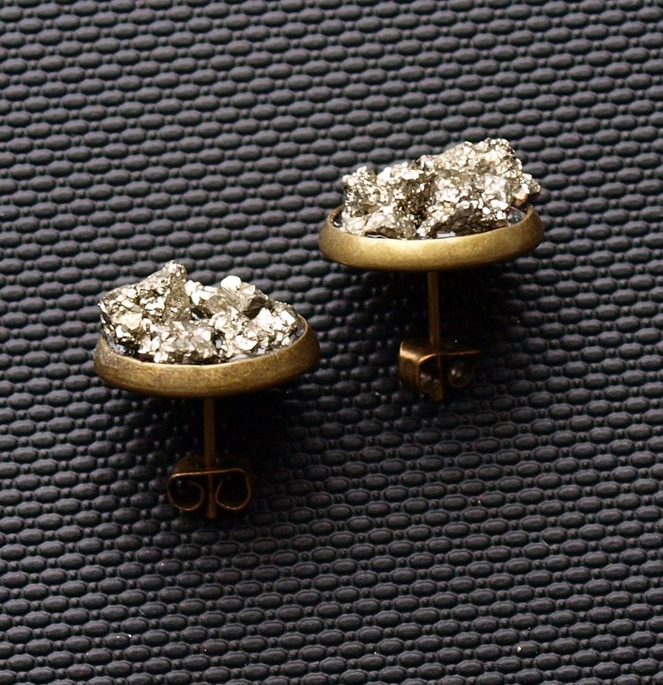 Pyrite Cluster Stud Earrings, Raw Pyrite Earrings
